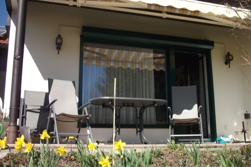 Vanuit de woonkamer is er toegang tot het zuidelijk gelegen terras, na een dag vol plezier en avontuur is het hier heerlijk nagenieten.